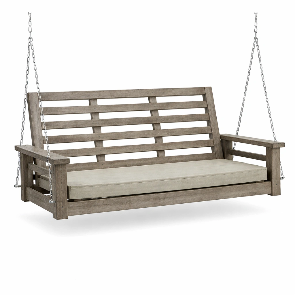 Columpio de porche de madera con cojín y cadena