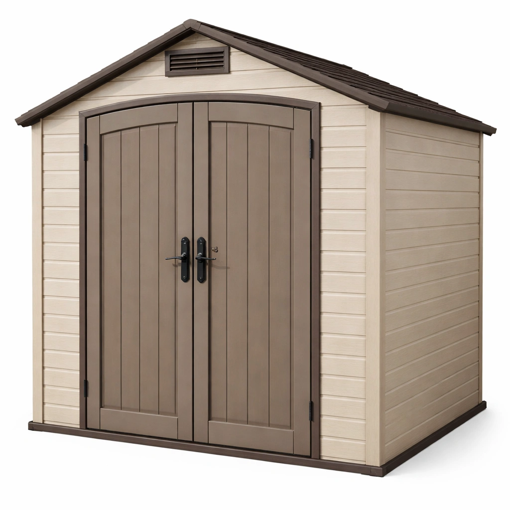 Caseta de almacenamiento para exteriores fabricada en resina plástica de alta resistencia. Cuenta con protección UV y es resistente al agua.